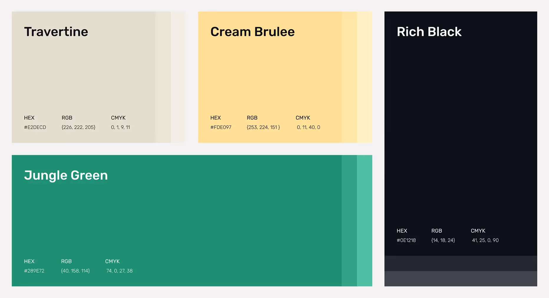 - Color palette for emotion & clarity: Used Travertine and Cream Brulee for warmth, Jungle Green for trust, and Rich Black for strong contrast.